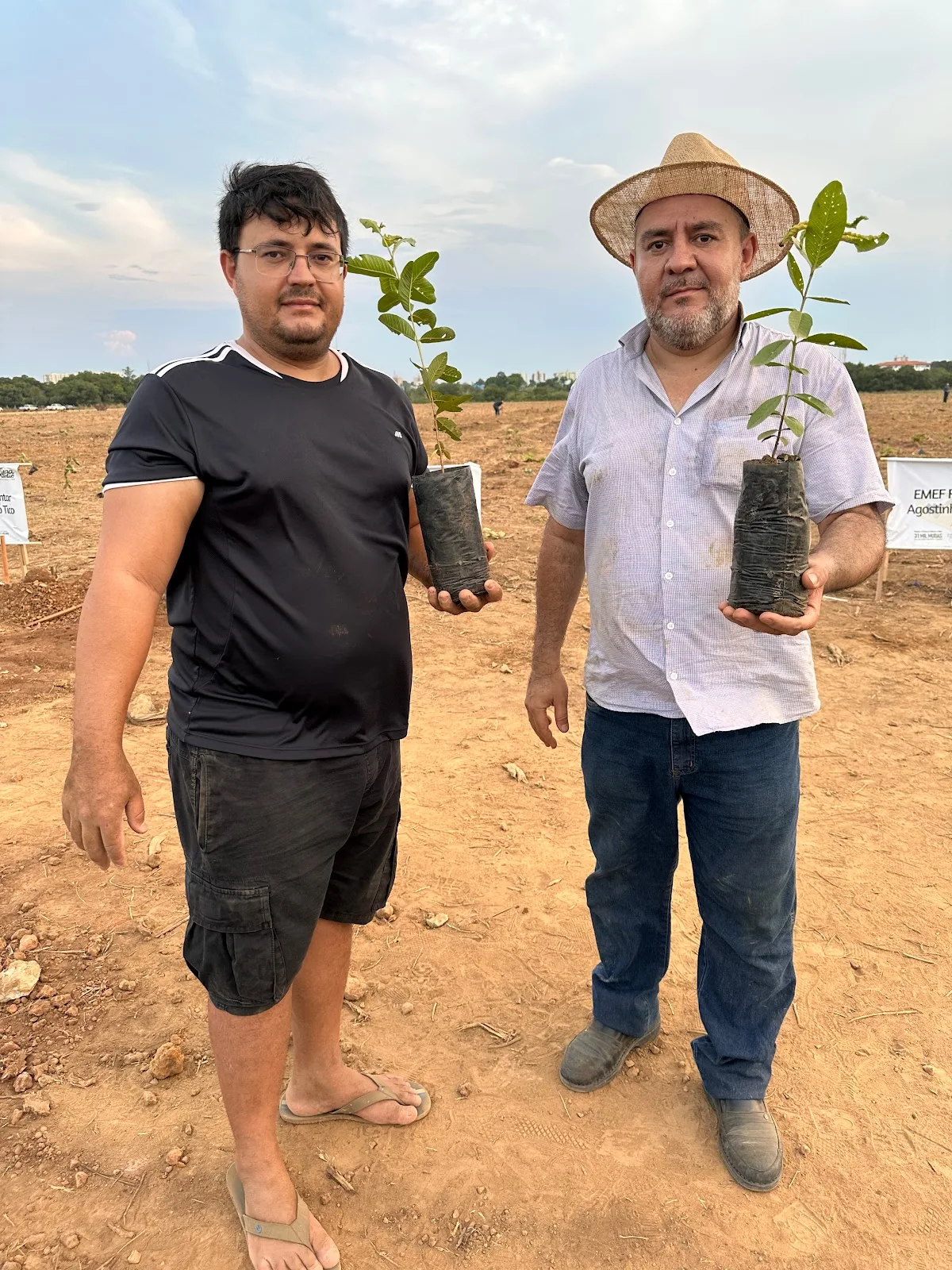 Nesta segunda-feira eles participaram do plantio de 31 mil mudas de árvores frutíferas e nativas ao longo da nova avenida Santos Dumont, com o objetivo de concluí-lo em um intervalo de 30 minutos.