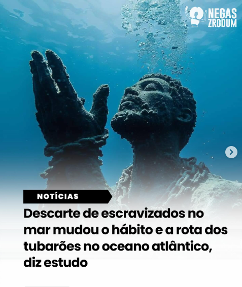 Estudo revela que o descarte de corpos de pessoas escravizadas no Oceano Atlântico alterou o comportamento e as rotas de tubarões durante séculos (Foto: @asnegasdoziriguidum)